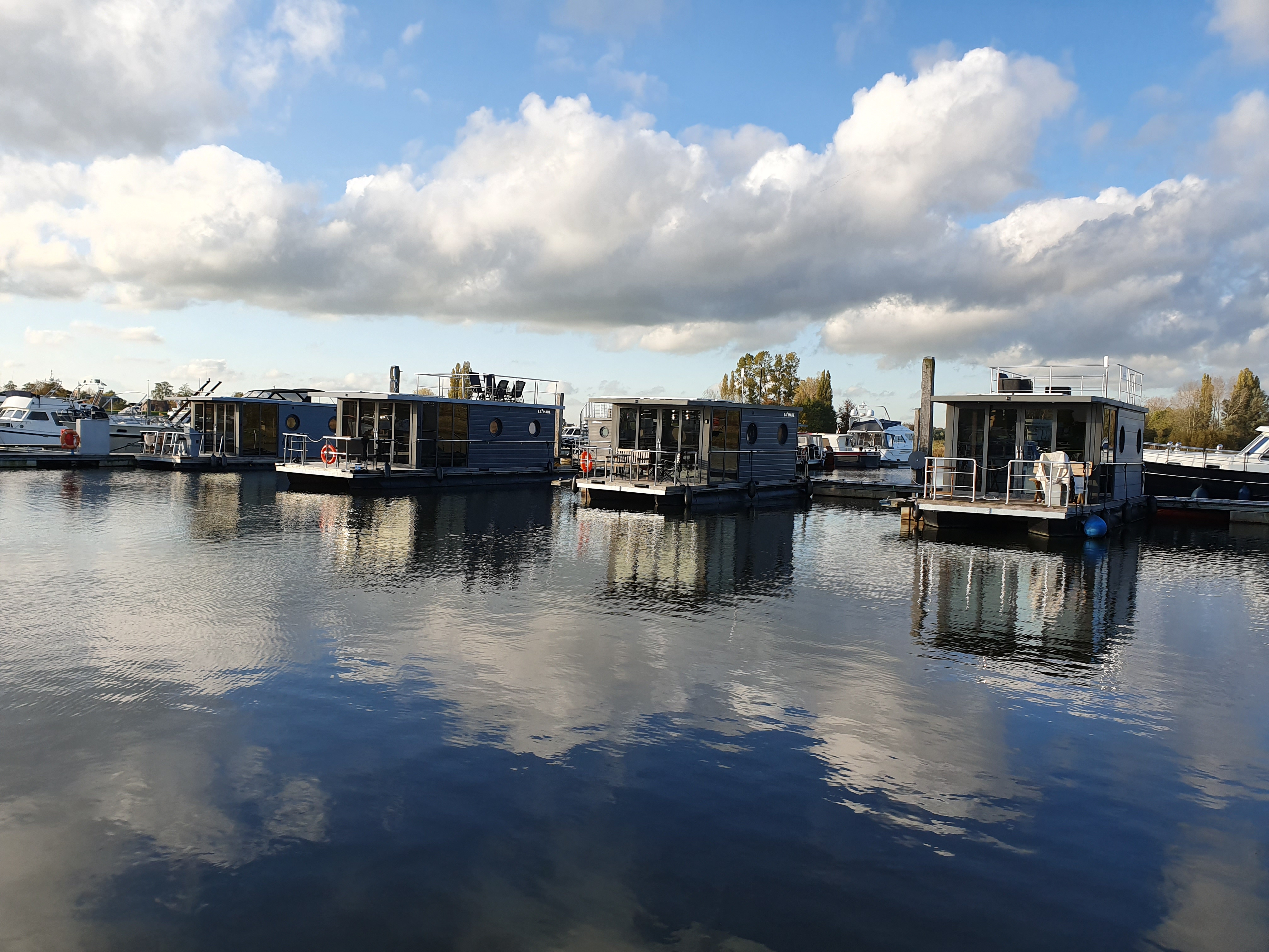 De Himmelblau is een fraaie, luxe afgewerkte houseboot uit 2019. De boot ligt op een A-locatie in de jachthaven, uitkijkend op de invaart en de uiterwaarden.